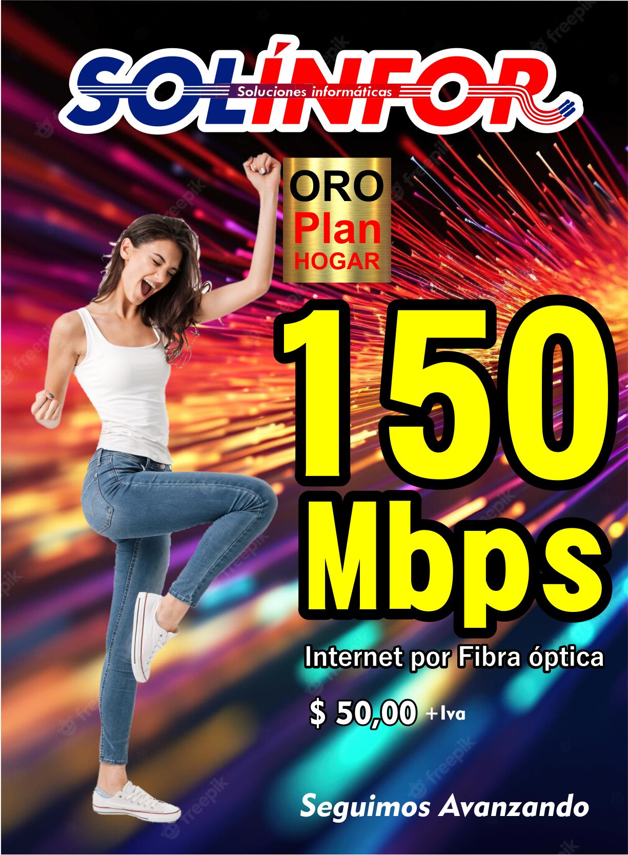 Servicio por fibra óptica, de 150Mbps, simétrico.